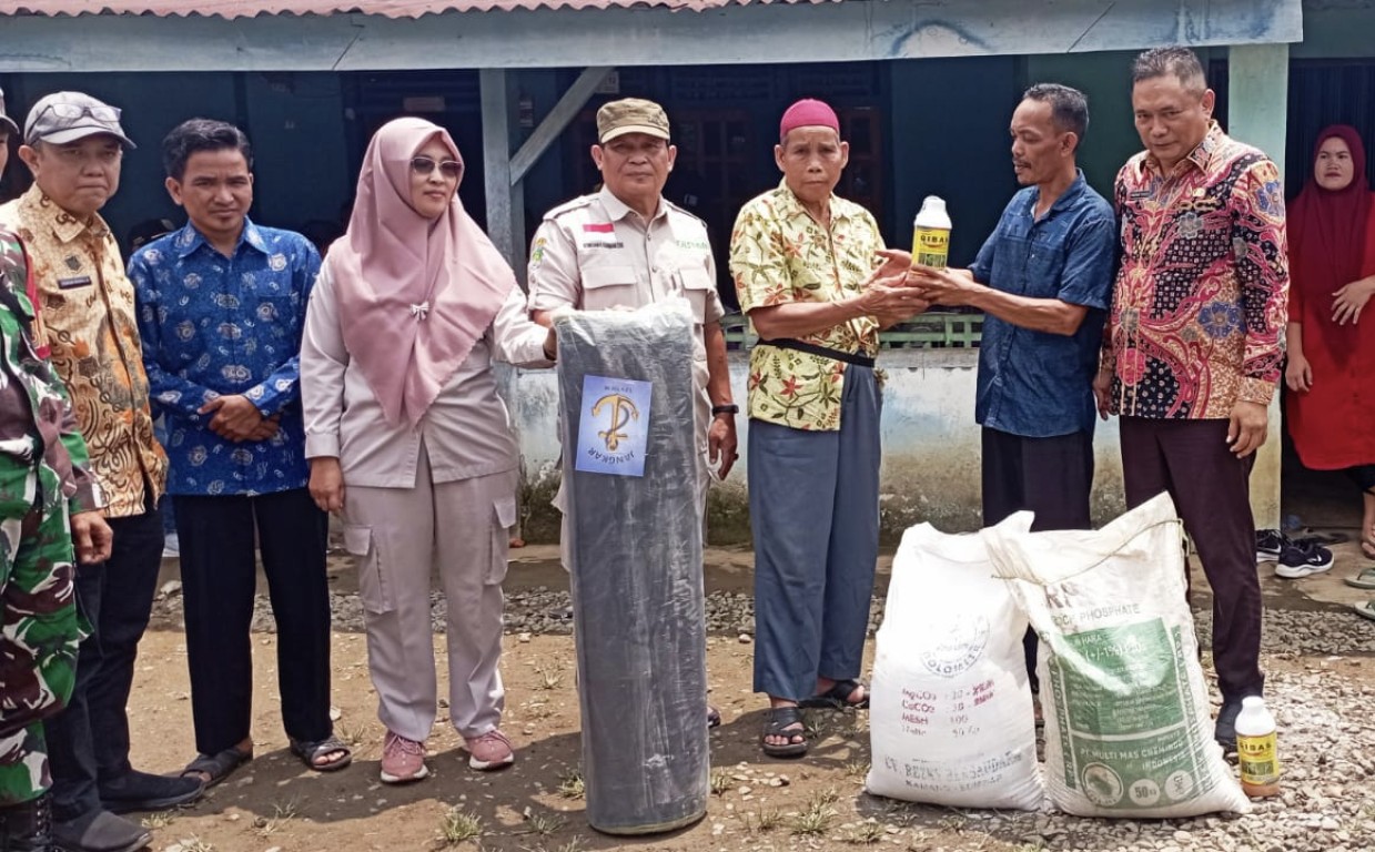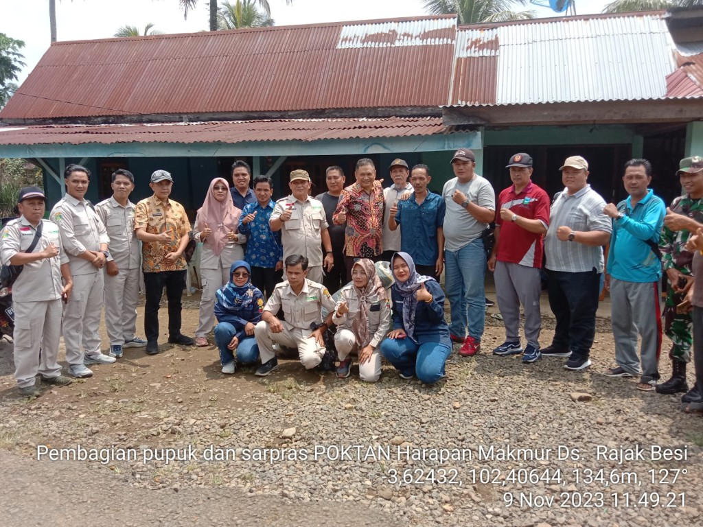 Dinas Pertanian Kabupaten Bengkulu Tengah Melakukan Penyerahan secara simbolis bibit kelapa sawit, pupuk, waring dan pestisida oleh Sekda Bengkulu Tengah Drs. Rachmat Riyanto, S.T., M.AP dan kepala Dinas Pertanian Bengkulu Tengah Endang Sumantri S.H., M.H kepada kelompok tani Harapan Makmur desa Rajak besi kec. Merigi sakti dalam kegiatan peremajaan kelapa sawit pekebun tahun 2023.
