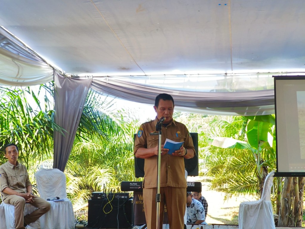 Selanjutnya Kadis Pertanian Bengkulu Tengah mengakhiri sambutanya menutup dengan Pantun. TANAM SAWIT DIKEBUN PETANI.... DIPELIHARA DAN DIRAWAT SEPENUH HATI..... PENANTIAN SELAMA TIGA TAHUN TELAH TERLEWATI..... MENIKMATI HASIL MULAI HARI INI.