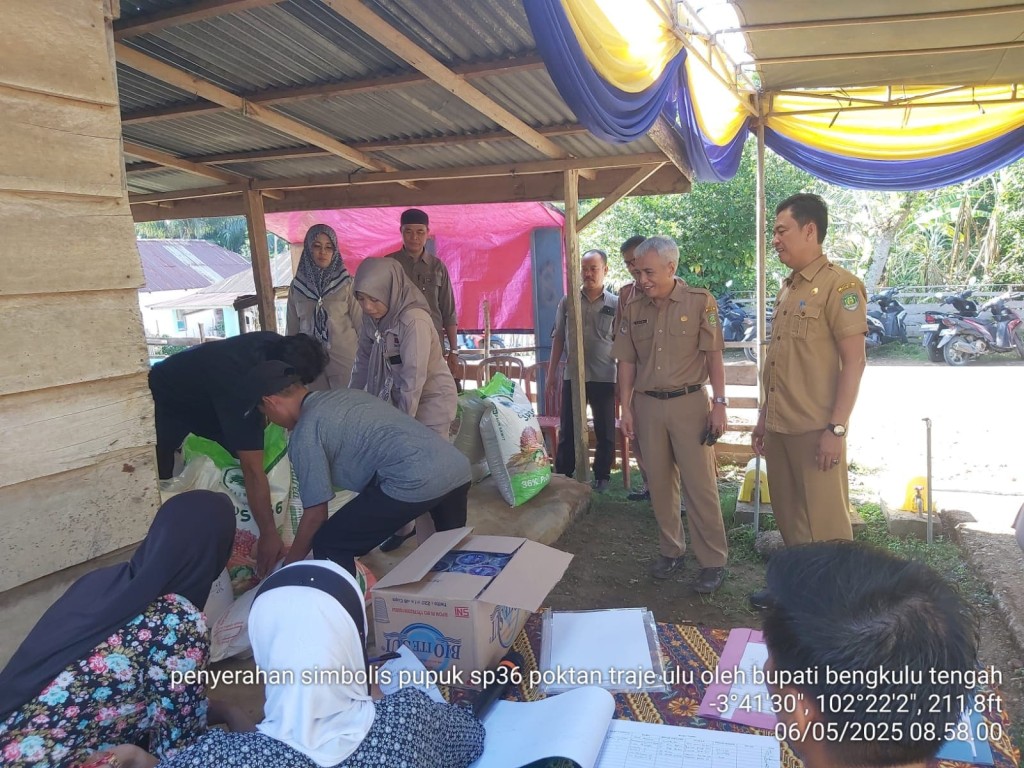 Plt. Kadis Pertanian Helmi Yuandri S.P., M.T., mendampingi Bupati Bengkulu Tengah Rachmat Riyanto memberikan bantuan pupuk ke kelompok Tani Traje Ulu di desa Batu Raja Kecamatan Pondok Kubang pada tanggal 6 mei 2025. Bantuan pupuk yang di berikan ke kelompok tani berupa Dolomite, SP36, dan Urea.